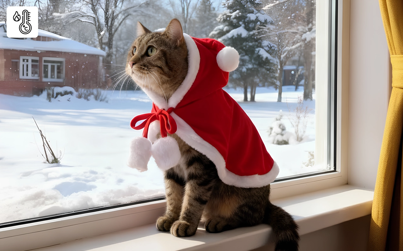 I bought this cape for our tabby and he stayed snuggly warm all Christmas Eve. So soft and fit him perfectly.