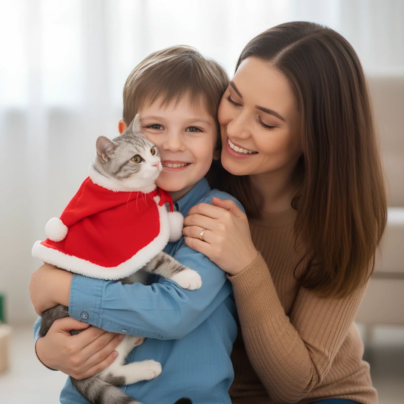 Cat Christmas Costume Santa Claus Hooded Cape