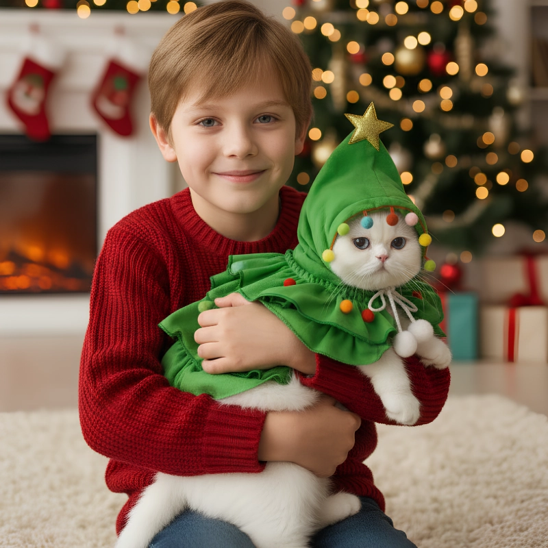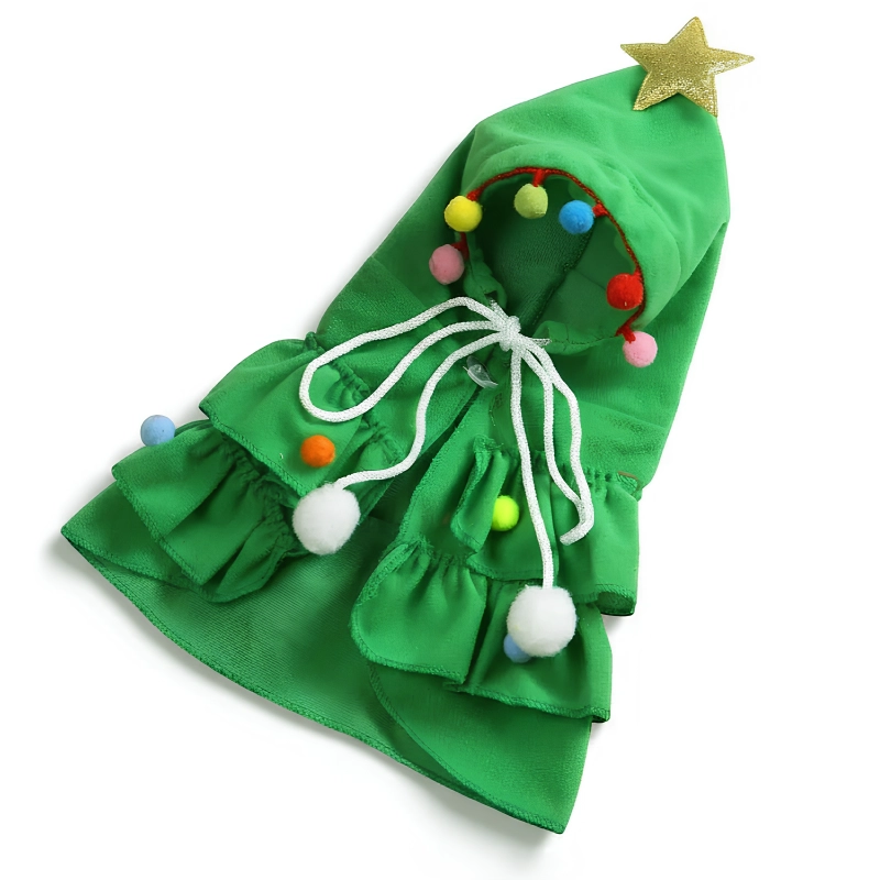 Cat Christmas Tree Costume Hooded Cloak with Star