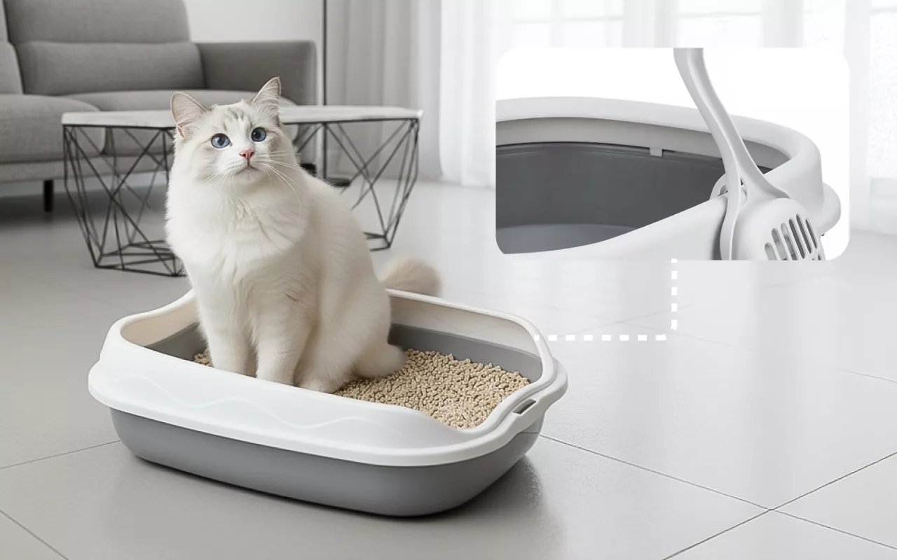 litter box, cat litter box, cat litter tray, high sided litter box, litter box with scoop