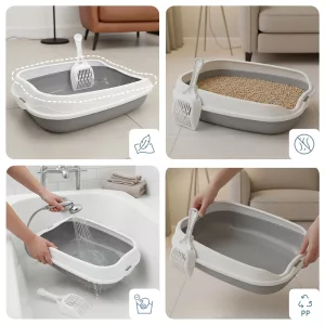 I was struggling with scattered litter until I got this tray. Now my floor stays clean, and the scoop makes life easier every day.