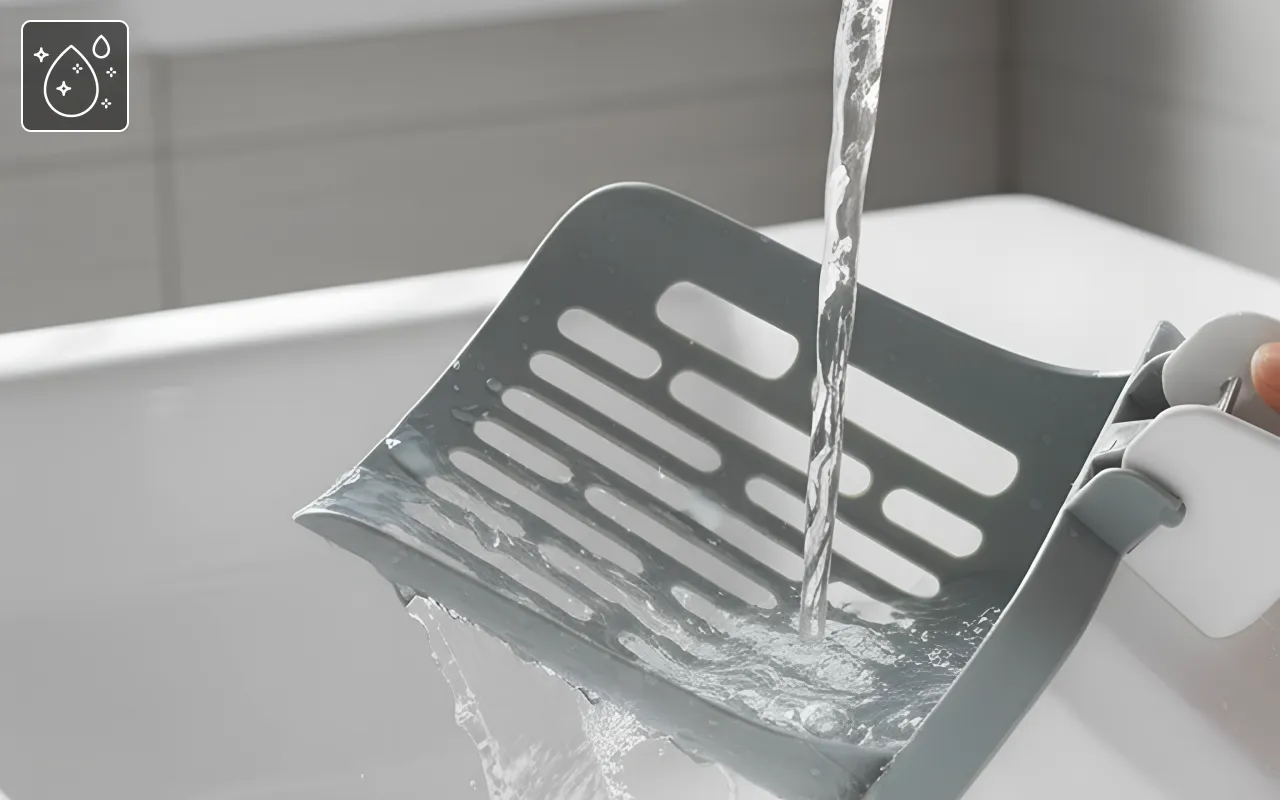 Easy to wash off and reuse each time. Super sturdy too, hasn’t bent or broken once and my cat’s box is cleaner than ever before.