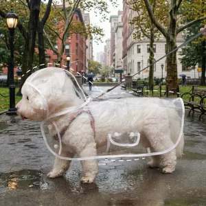 My little dog stays dry on all our walks now. The see-through coat looks cute and keeps her comfy, even in really heavy rain.