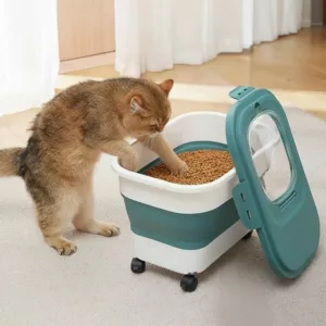 Food stays crisp and dry, so pets enjoy every meal. Slim design fits snugly into tight corners, keeping your space tidy at all times. Easily move it about, thanks to smooth-rolling wheels underneath. The clear top lets you see the grains without lifting the lid.