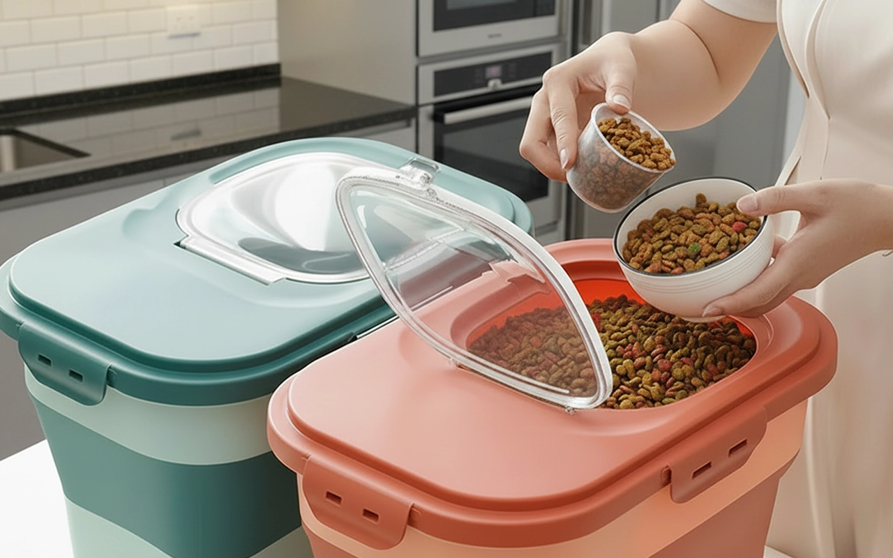 I love how it fits right into a small space by the fridge. The clear lid is awesome because I know when I need to buy more food without opening it.