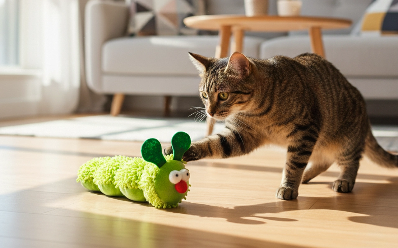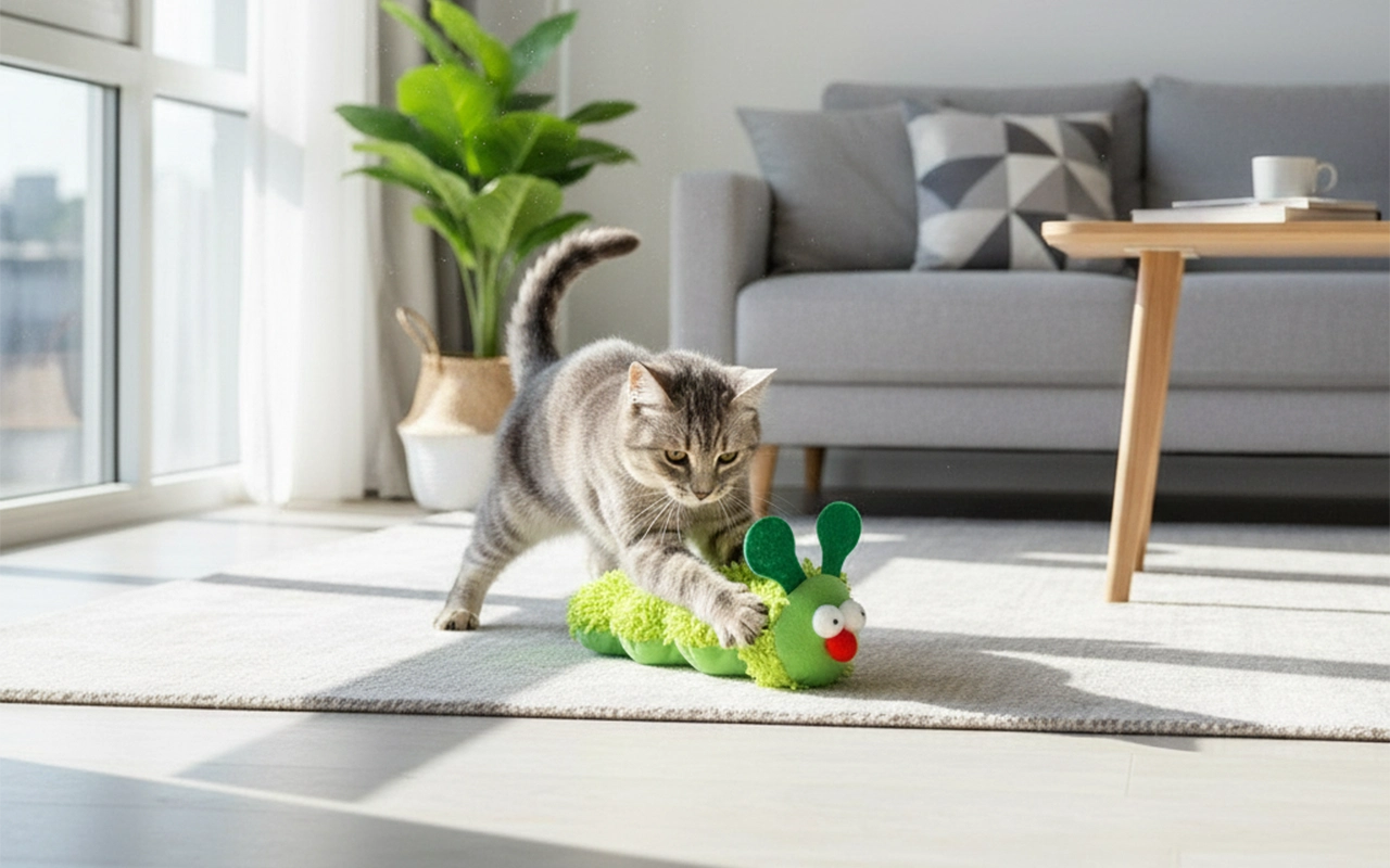Boredom disappears when your cat finds the Primdog caterpillar. This cheerful playmate brings joy to every moment indoors. Soft material feels gentle beneath paws and claws.