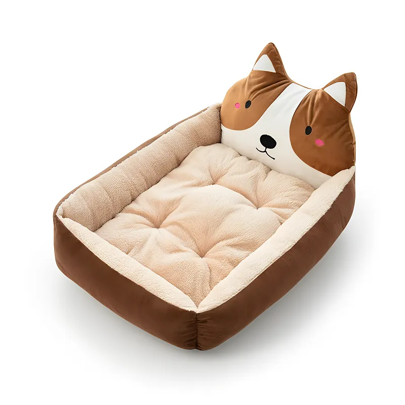 Cute Soft Calming Dog Bed Warm Pet Cushion with Raised Edges