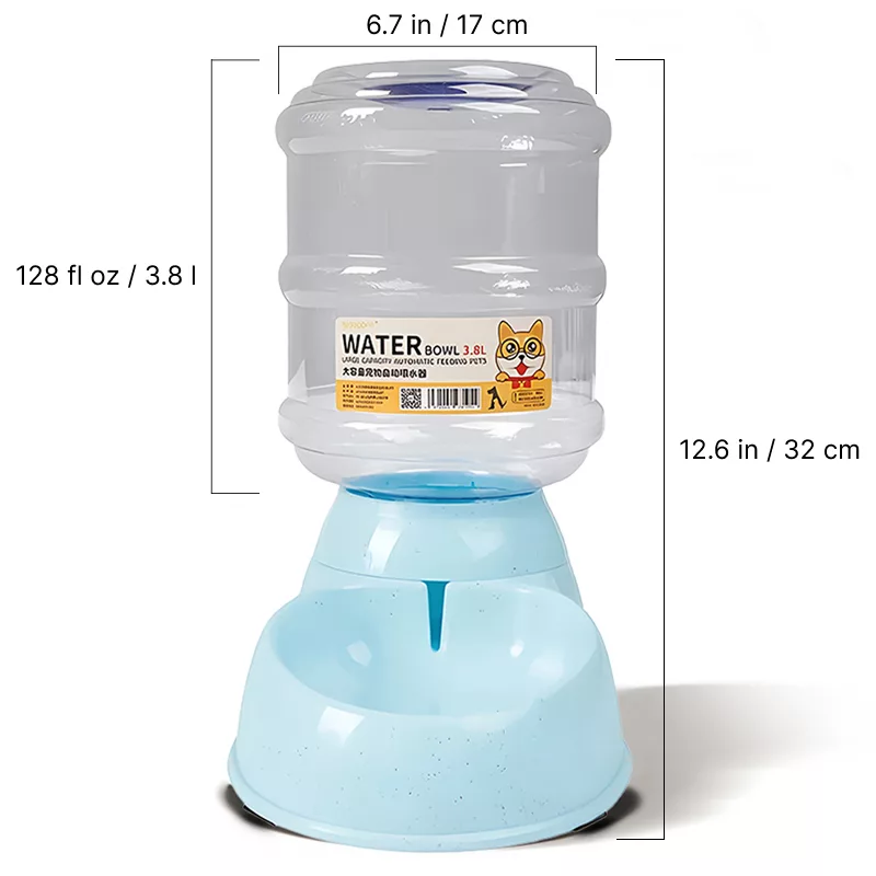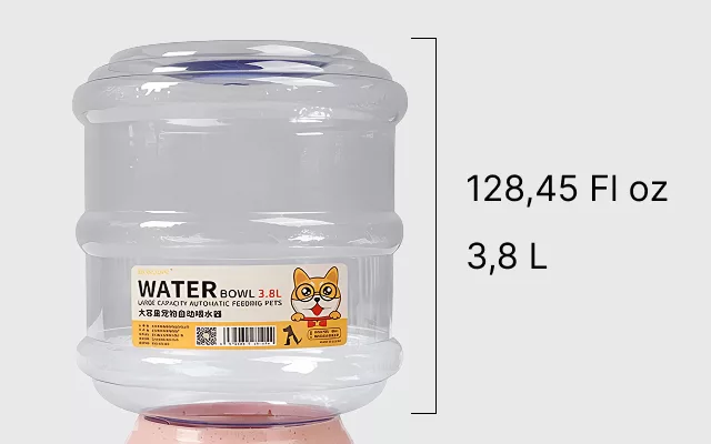 This dispenser guarantees a constant supply of fresh water for your beloved dog. It's designed with an intuitive mechanism, which keeps the bowl always full. Have peace of mind when you're away!