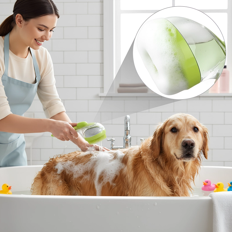 8 reviews for Dog Silicone Bath Brush Shampoo Dispenser with Long Handle