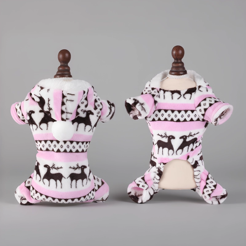 Dog Warm Fleece Christmas Pyjamas with Hood