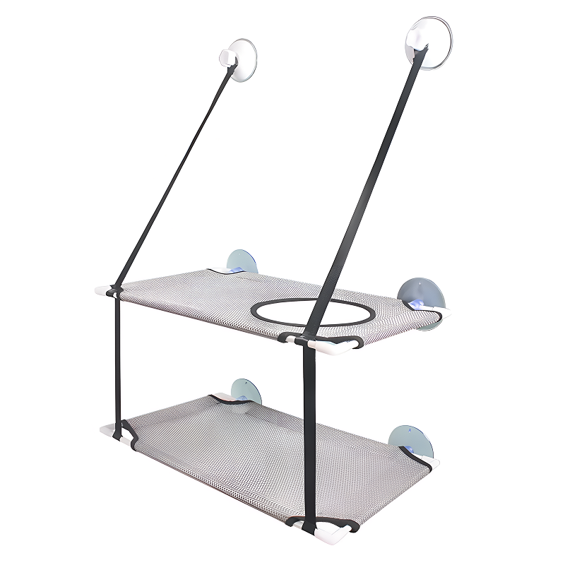 Let every feline enjoy fresh air and lovely views daily. Primdog Double Deck Cat Hammock keeps pets safe and very happy indoors. Strong suction cups hold it firmly on any window surface with ease. Lightweight parts enable quick assembly without the need for any tools.