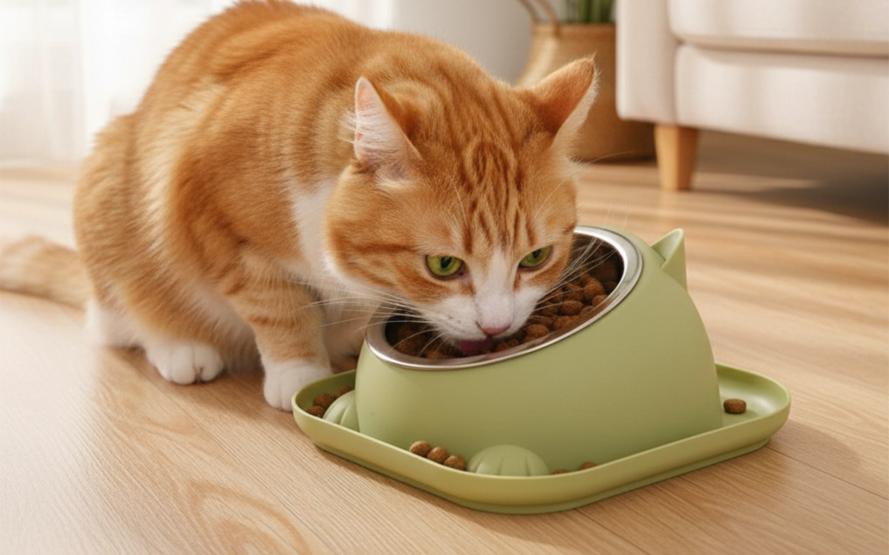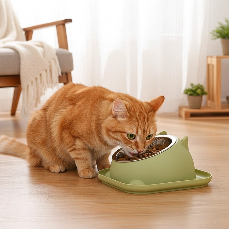 The raised dish really helps my chubby cat eat comfortably. I don’t miss wiping up messes every day. It looks nice in the kitchen too.