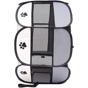 Great to have something like this in living room when you can’t keep an eye on the little kittens or puppies. Feels better than a metal cage and it zips at top so they can’t jump and unzip it. Great price and folds up super thin.