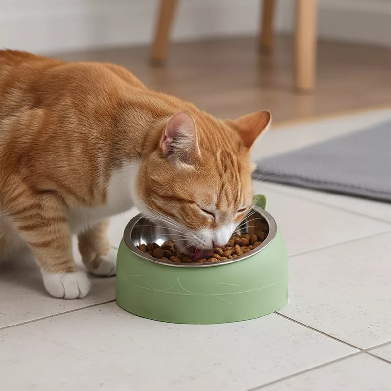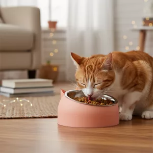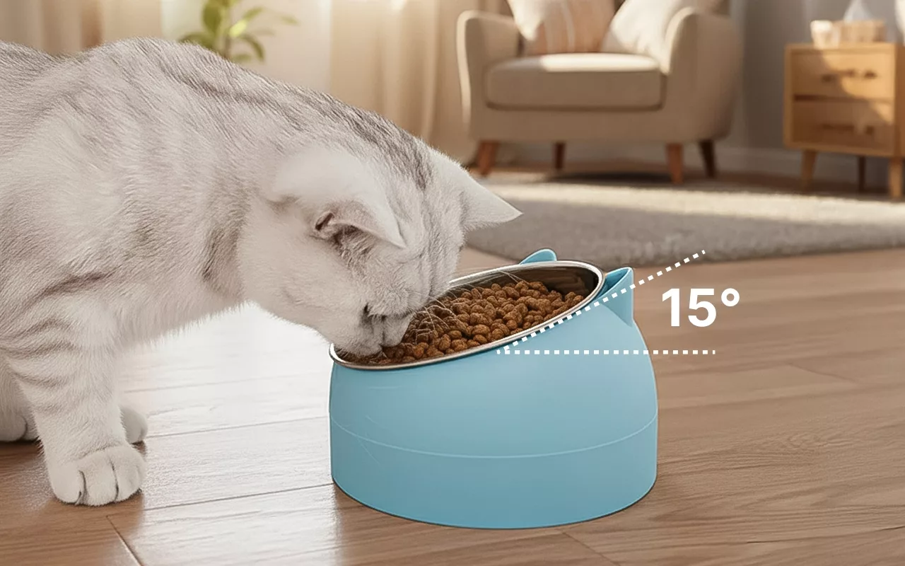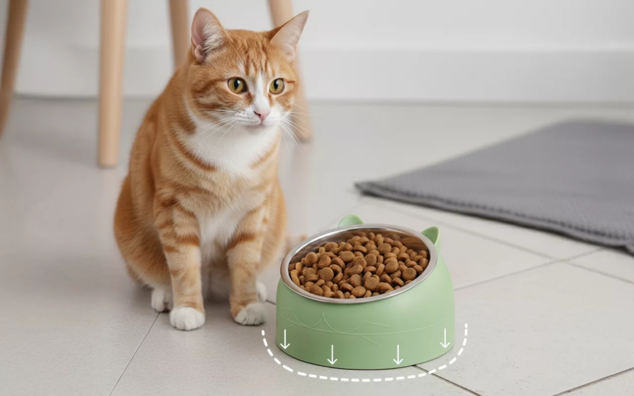 The stand makes feeding more comfortable for my chubby tabby. She eats neatly, and the non-slip base means less noise at night!