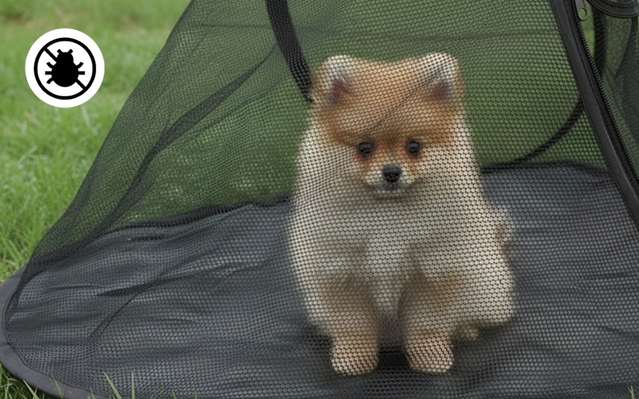 Primdog mesh barrier keeps annoying insects away from animals. Your pet enjoys every moment without discomfort or bites.