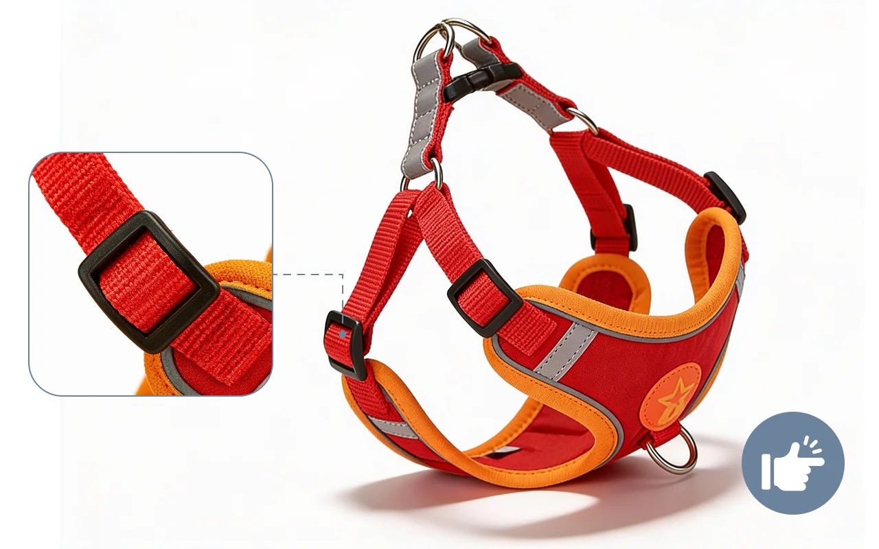 Morning walks got easier! The harness is lightweight, easy to wash, and the reflective stitch is clear as day in the evening.