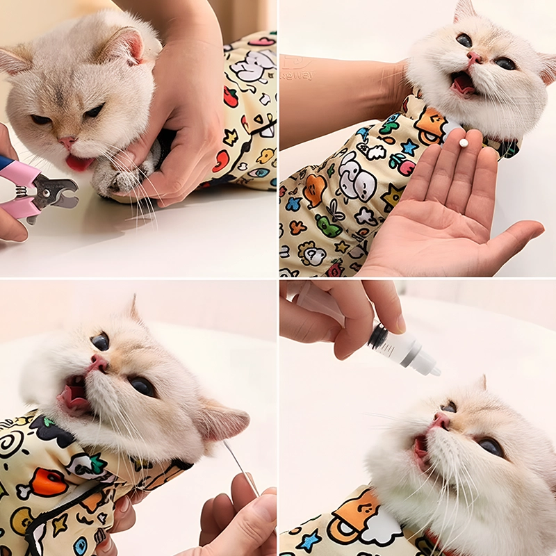 Self-Adhesive Cat Grooming Wrap Restraint Bag for Nail Cutting