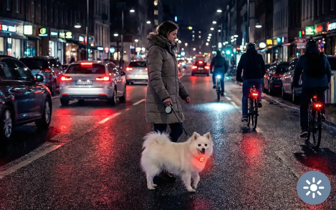 Shining lights ensure animals never blend into the darkness outside. Drivers and cyclists notice furry friends much sooner on each walk.