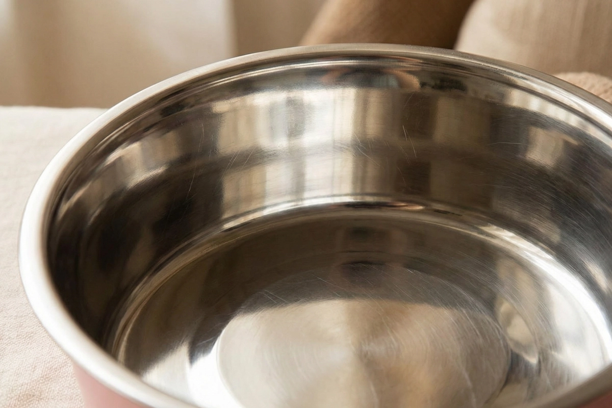 I’ve bought so many dog bowls that end up scratched or smelly, but this one stays shiny. No odors and it feels really strong.