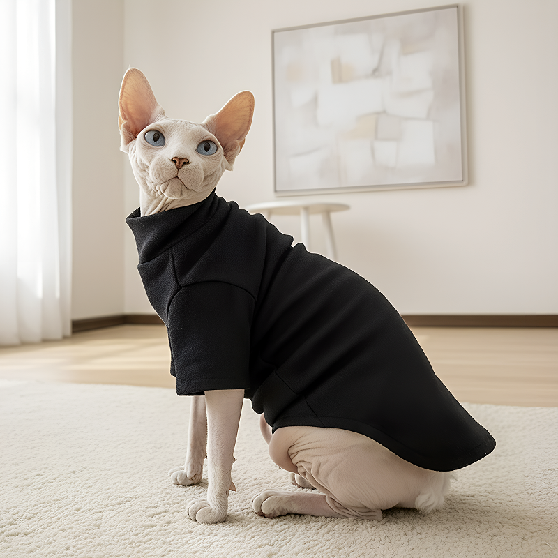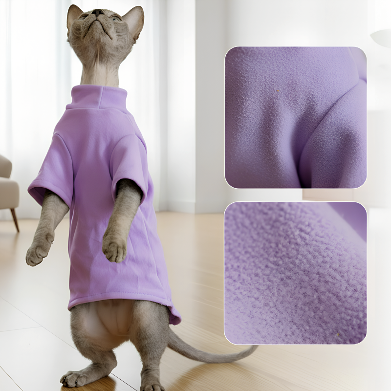 My cat wears this when it’s cold and stays smoke-free indoors. The gentle cotton helps with her sensitive skin.