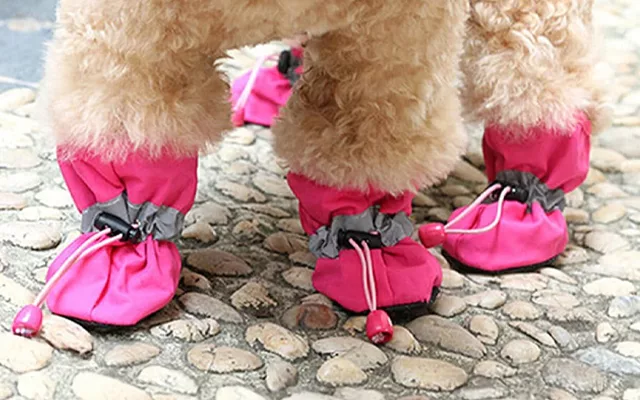Puddles won't be a problem anymore with these dog shoes. They are made of a water-resistant fabric, keeping your pet’s paws dry in wet weather.