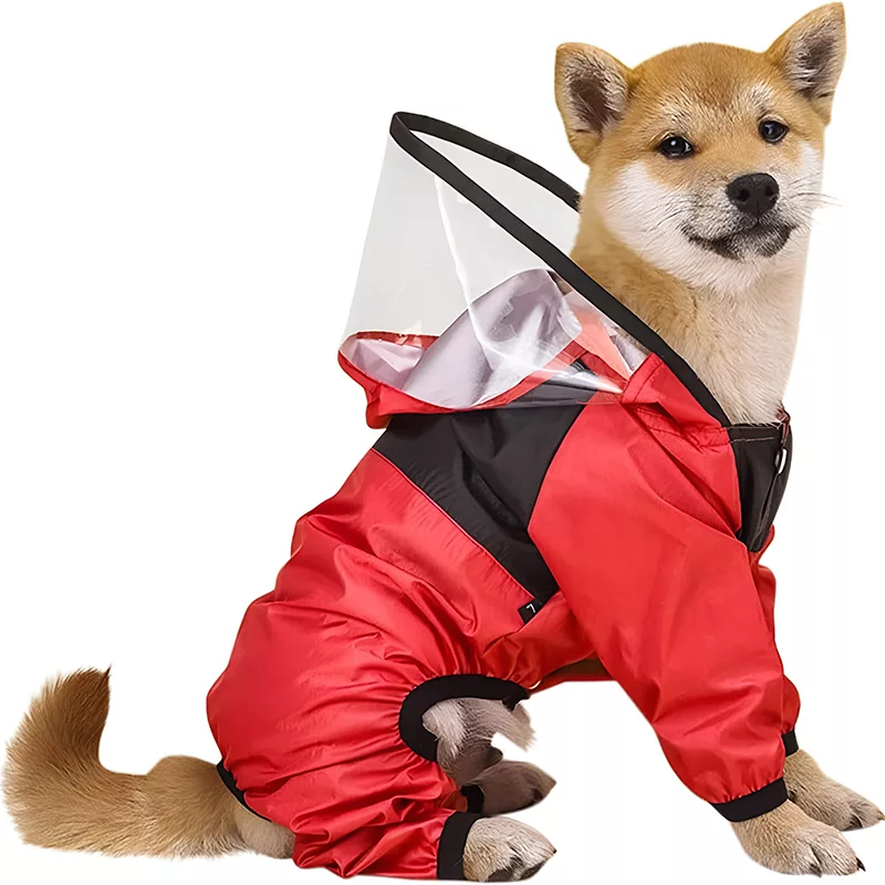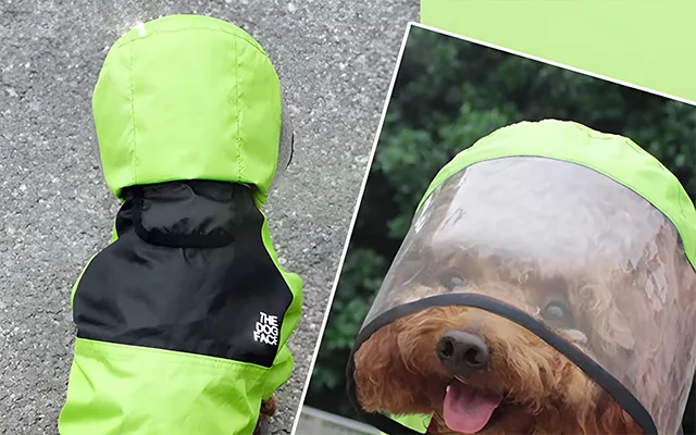 A large, transparent hood will fully cover the pet's head. It helps shield your dog against harsh weather without obstructing vision. They can easily explore outdoors, rain or shine.