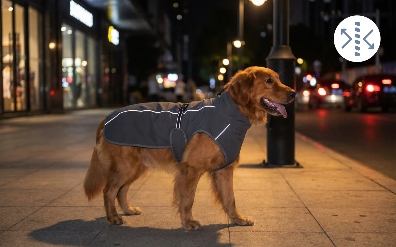 Reflective trims shine brightly whenever car lights pass by. Evening strolls become safer for both owners and playful pups.