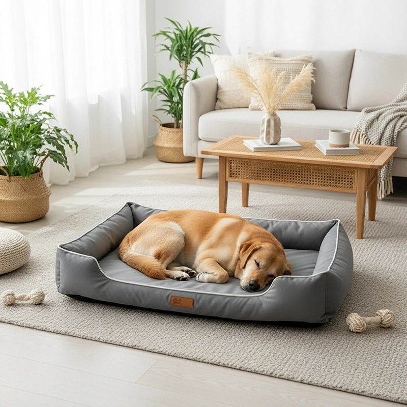 We needed something easy to clean, and this dog bed wipes down fast! Our big pup loves the support and sleeps better through the night.