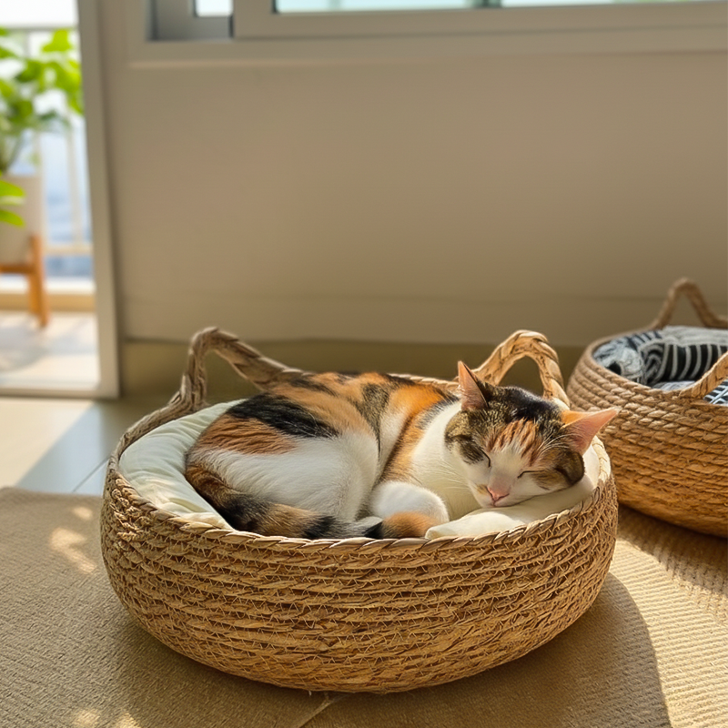 The handwoven style feels special. My kitty kneads into the cushion for hours, and it fits any room I put it in.