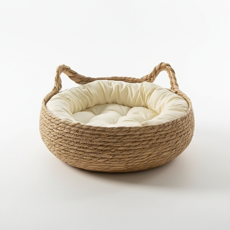 Wicker Cat Bed Basket Pet Nest with Cotton Cushion