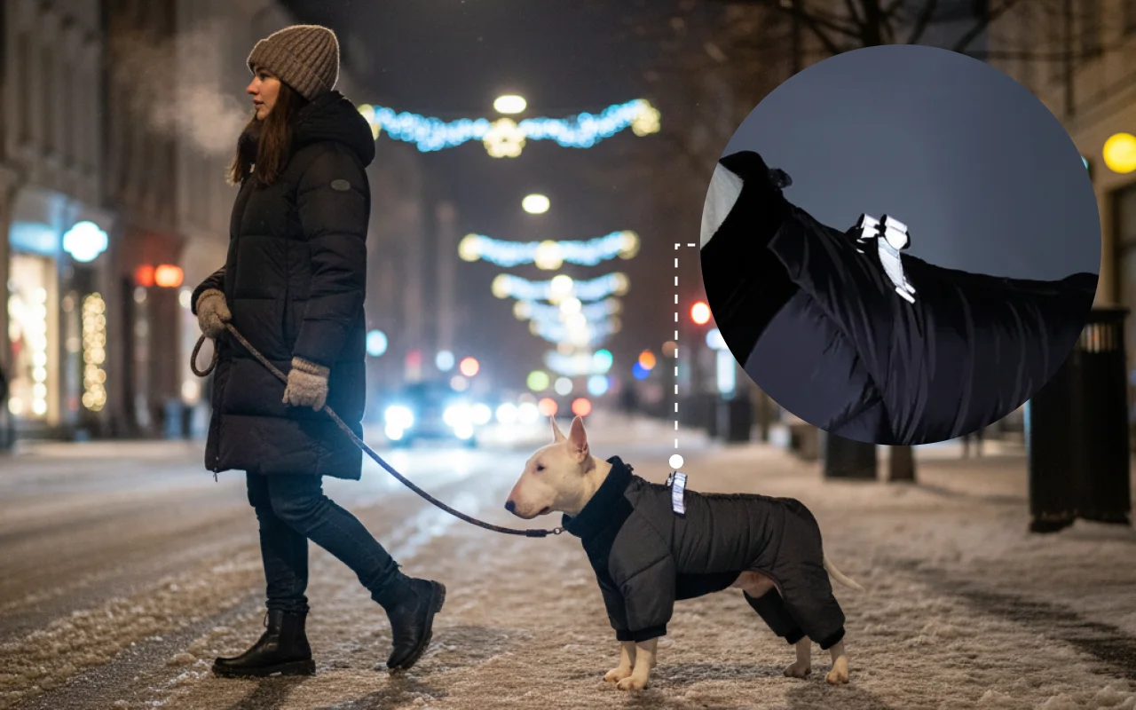 Reflective trim lets passing cars spot your friend easily. Evening strolls become safer with high visibility everywhere.