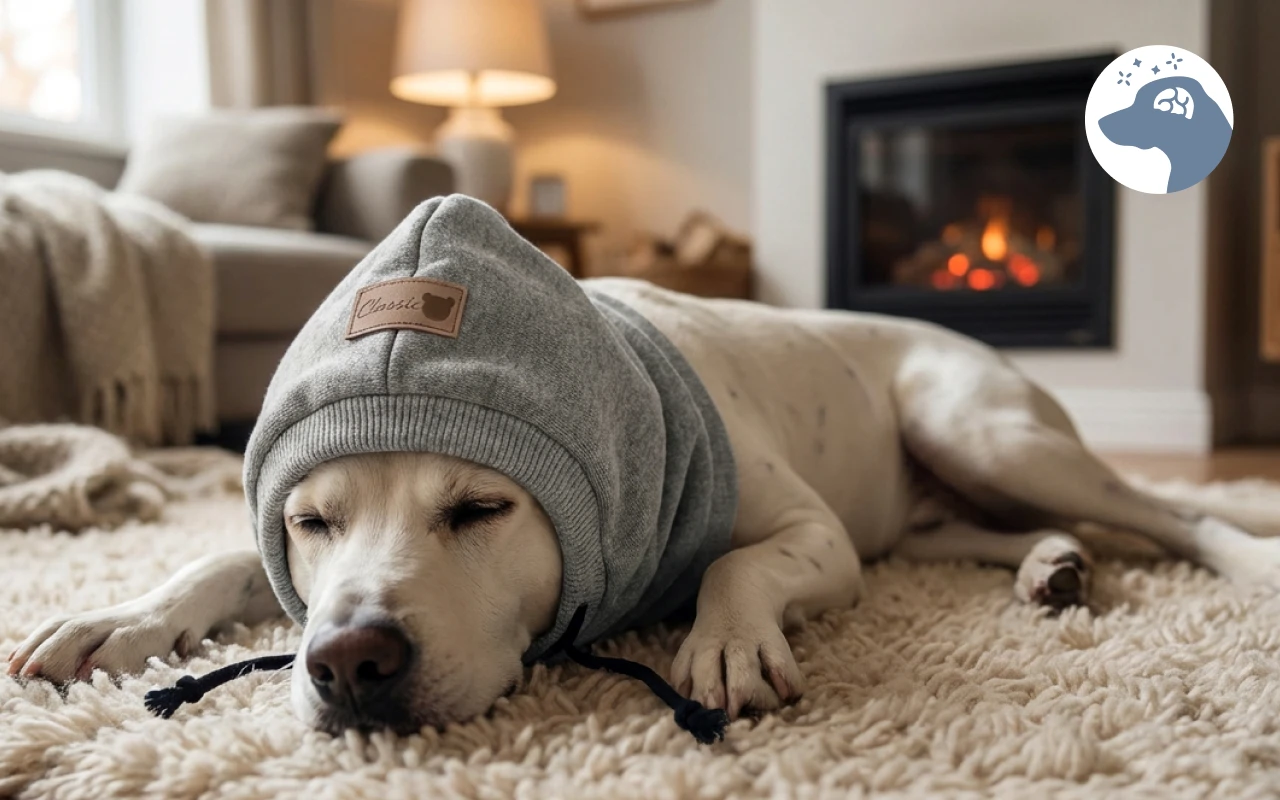 This hat is perfect for Minnesota winters. Our retriever has stopped shaking his ears so much, and he barks less during storms. Five stars!